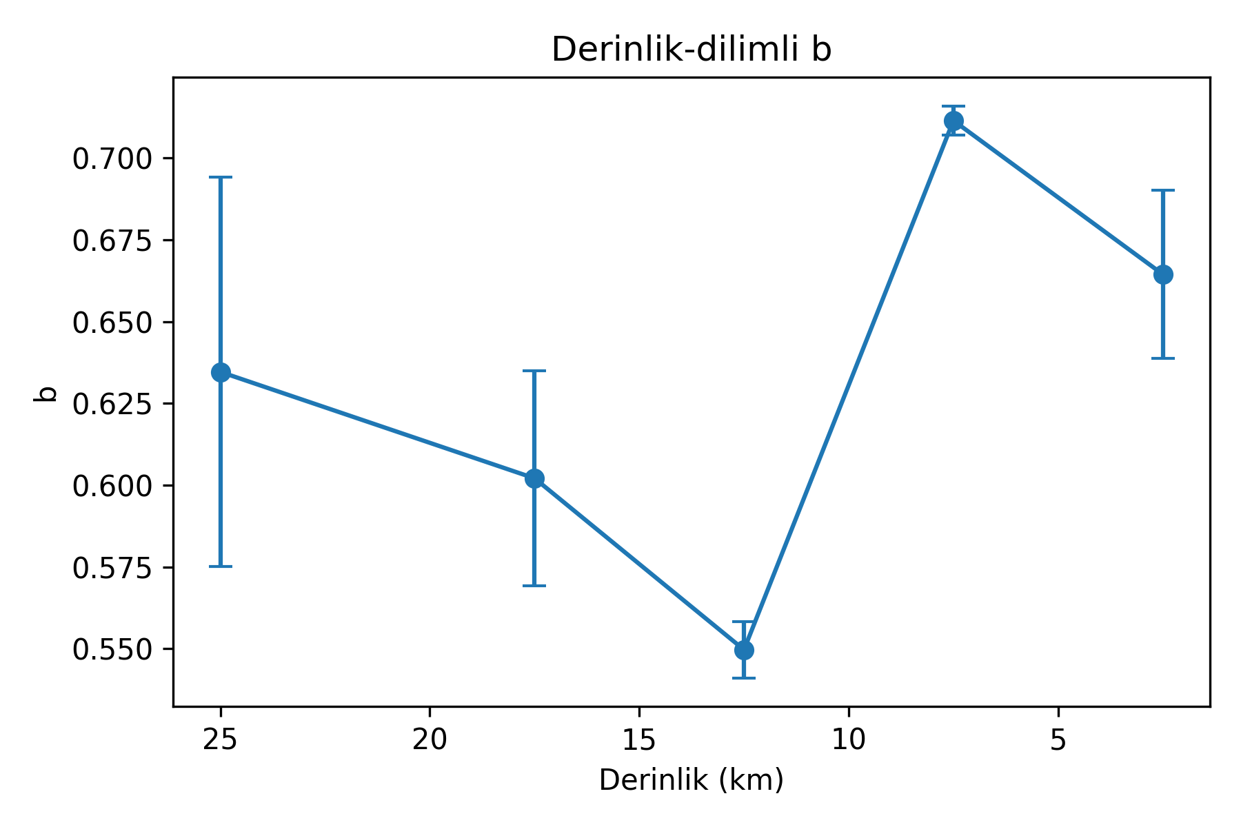 - Bölgesel ve derinlik-dilimli b-değeri haritaları oluşturabilirsiniz