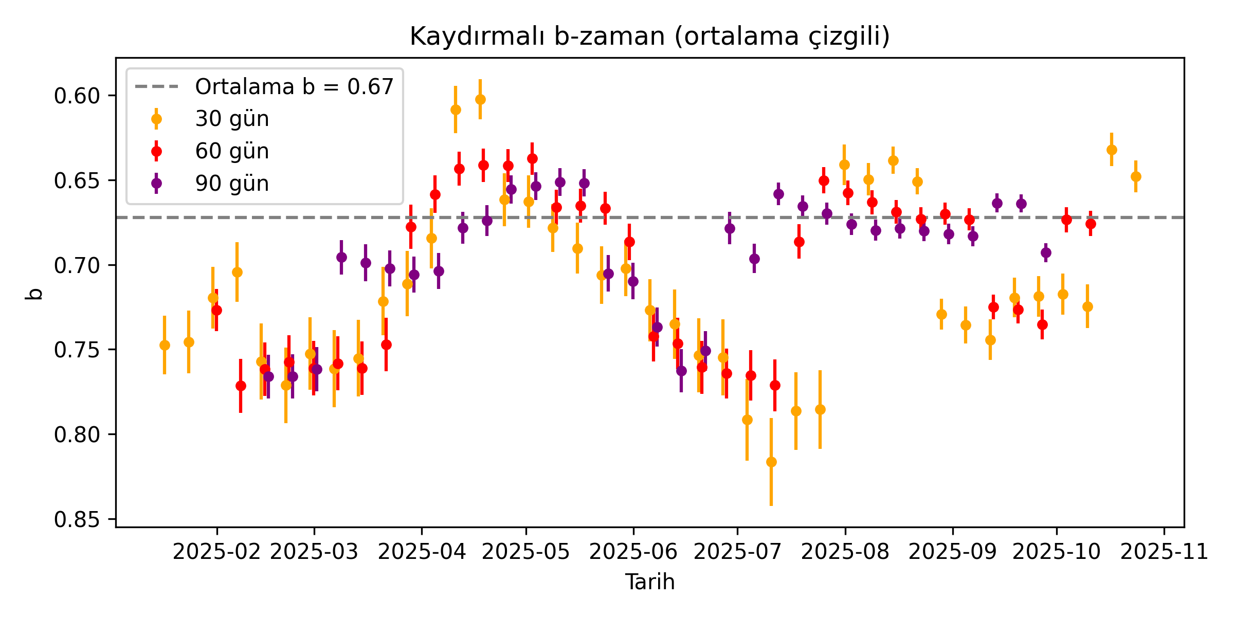 - Zamana bağlı b-değeri değişimlerini inceleyebilirsiniz